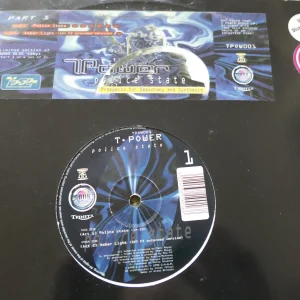 T-Power – Police State (part 1) (Sour Records 1995 TPOW001) Matrix No’s: A1/AA1 – UK Pressing Vinyl in Nr MINT condition (there are some surface marks visible on the vinyl when held up to the light but they don’t affect the sound quality) Die Cut Stickered Sleeve in Nr MINT/Excellent