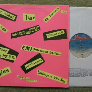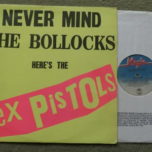 Sex Pistols – Never Mind The Bollocks (Virgin Records 1977 V2086) Matrix No’s: A5/B5 – UK Pressing – Third Press [12 tracks, from the original UK sequence master including “Submission” as B3]. Dayglo sleeve with titles on the rear omitting Submission, no timings, Copyright Control 1977, “EMI” credits include Vicious,