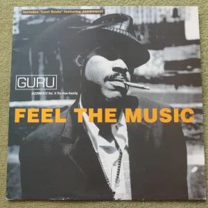 Guru – Feel The Music (Cooltempo Records 1995 12COOL313) Matrix No’s: A1/B1 – UK Pressing Vinyl in Nr MINT condition (there are some light surface marks visible on the vinyl when held up to the light but they don’t affect the sound quality) Sleeve in Nr MINT condition – a little