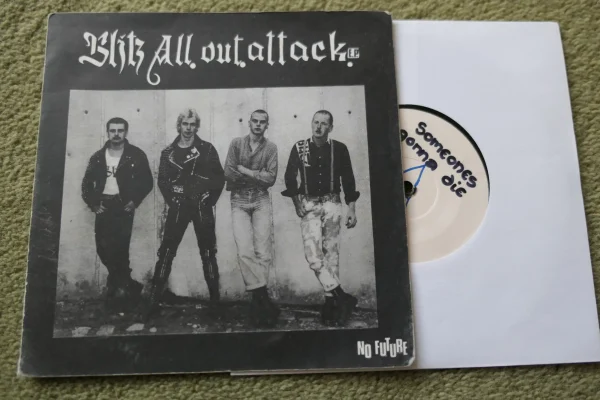 “All Out Attack” is the debut 7″ EP by the British punk rock band Blitz. It was released in 1981 on No Future Records.