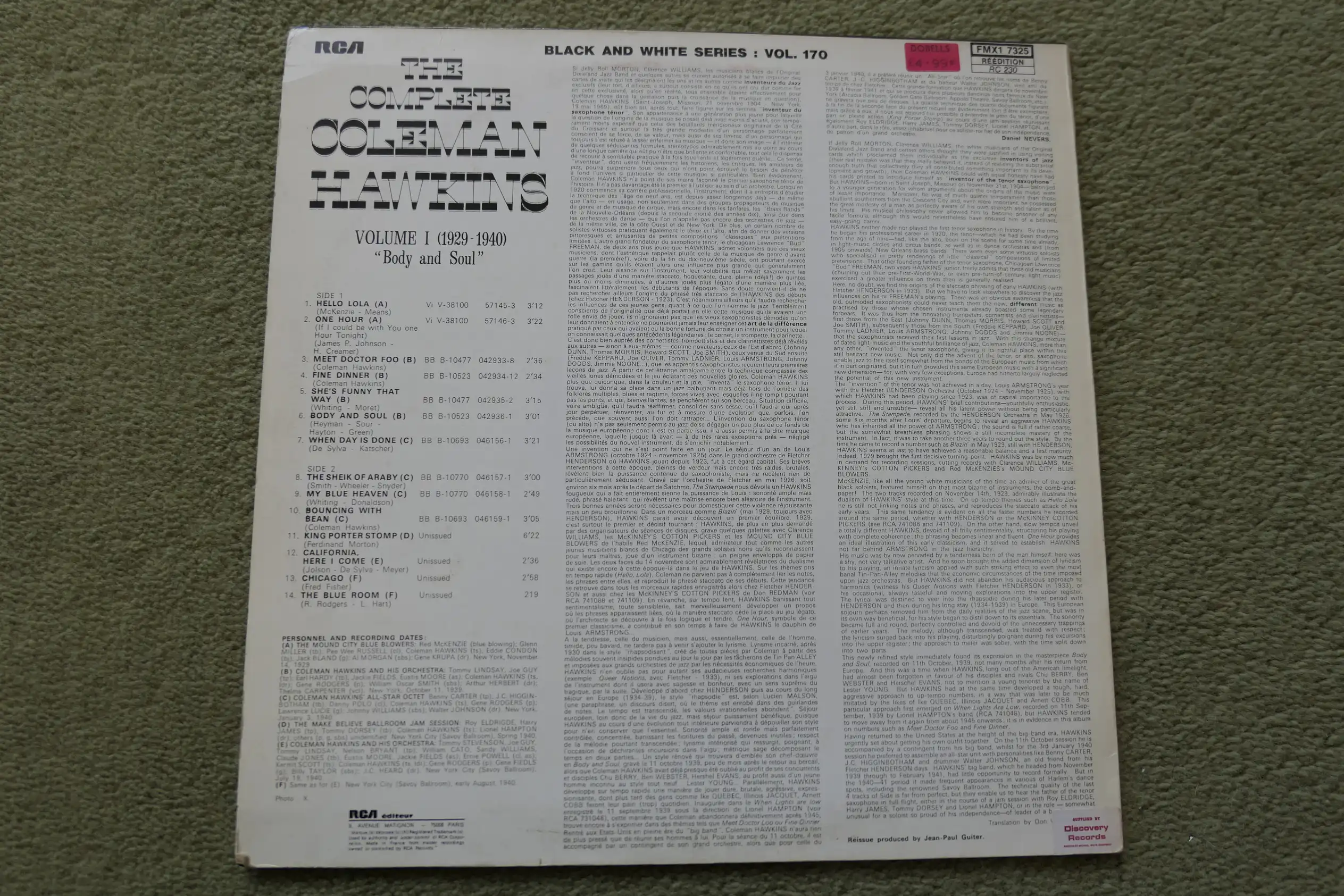 - Tenor Saxophone, Leader – Coleman Hawkins (tracks: A3 to A6, B12 to B14)