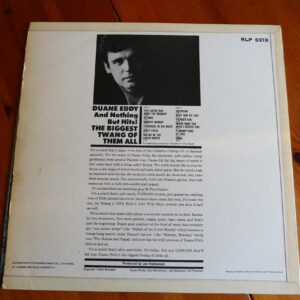 Duane Eddy (April 26, 1938 – April 30, 2024) was an American rock and roll guitarist. In the late 1950s and early 1960s, he had a string of hit records produced by Lee Hazlewood, which were noted for their characteristically “twangy” sound, including “Rebel-‘Rouser”, “Peter Gunn”, and “Because They’re Young”. He had sold 12 million records by 1963.