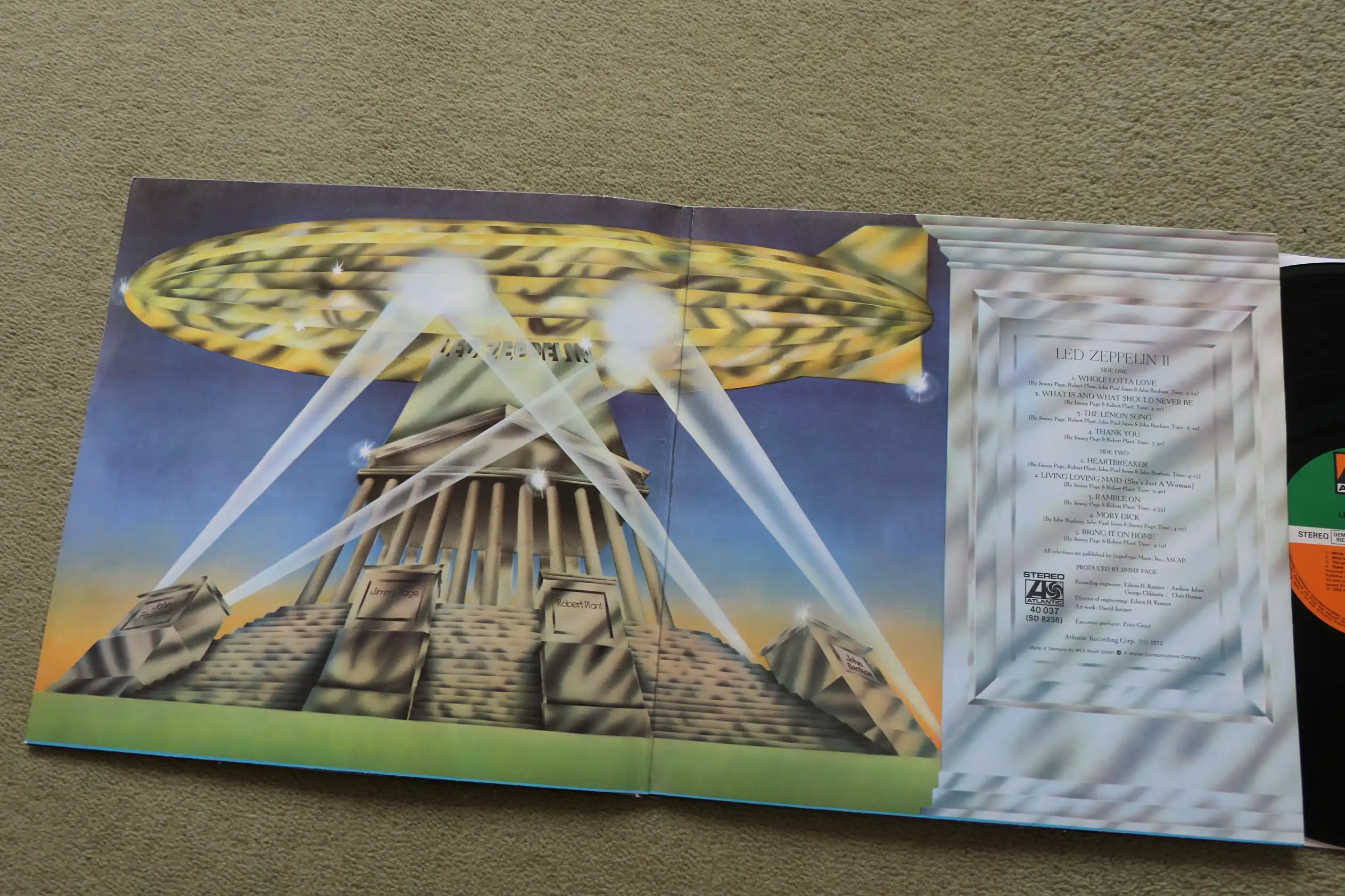 Led Zeppelin II is the second studio album by English rock band Led Zeppelin, released on 22 October 1969 by Atlantic Records. It was recorded from January to August 1969 while the band toured North America and the United Kingdom; its production is credited entirely to songwriter and lead guitarist Jimmy Page. Led Zeppelin II is the band’s first album recorded with audio engineer Eddie Kramer, whose techniques appreciably influenced their later work.